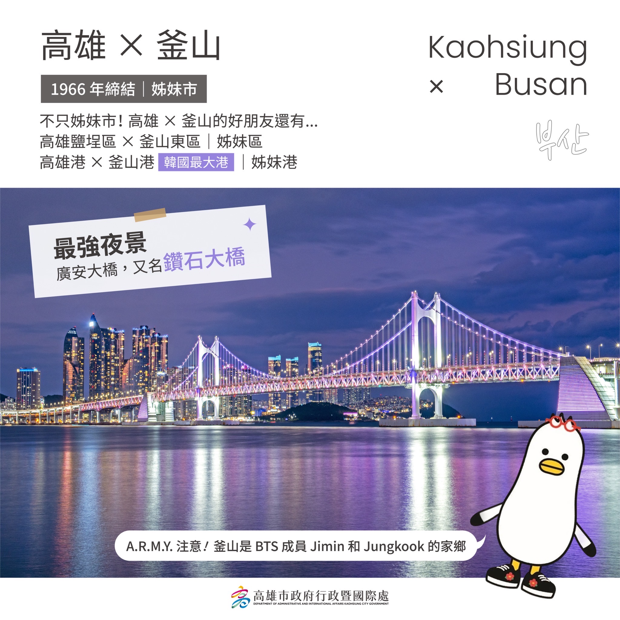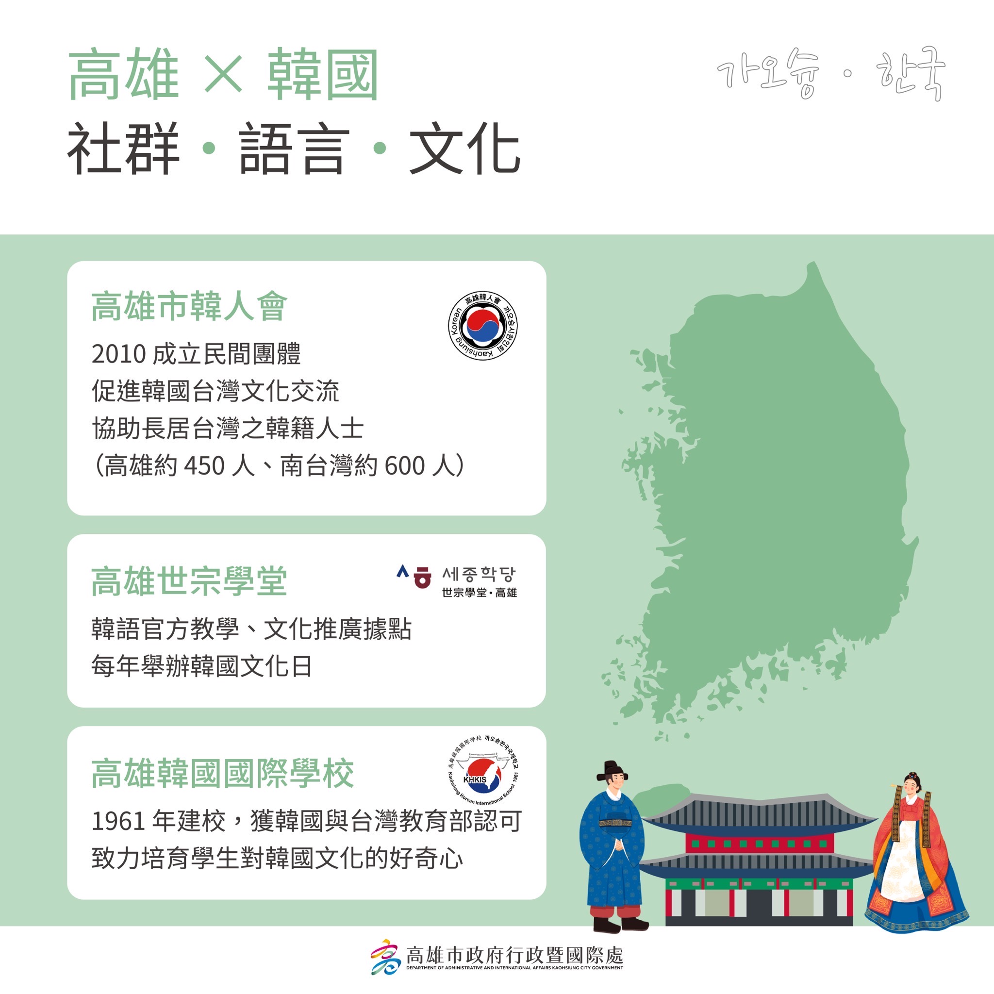 隨著多組韓國天團接力選擇高雄開唱,高雄已成為粉絲追星熱點,不僅演唱會及應援活動帶來城市關注熱度,高雄市政府也積極將國際交流推展至校園內!高雄市過埤國小在校長郭榮全帶領老師用心設計下,透過韓國城市主題裝置及韓國文化體驗活動,讓學生在趣味中更認識高雄在韓國的姊妹市與友好城市最新交流,高雄市政府教育局長吳立森及行政暨國際處長張硯卿也親自參與,與學生一同在趣味中培養國際視野,期盼深化台韓友好,在校園向下扎根。