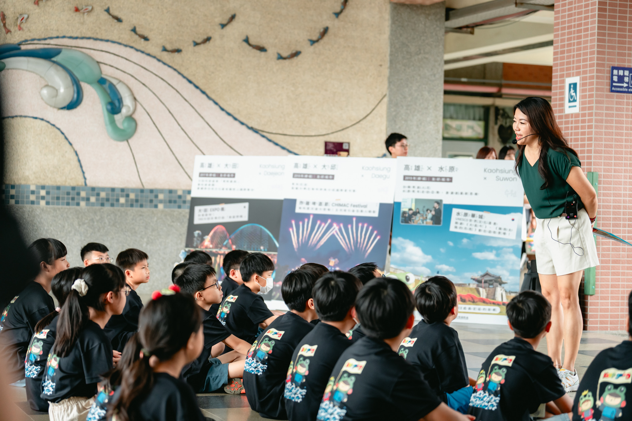 學校現場活動熱度爆棚!過埤國小學生大秀韓團熱舞,也踴躍分享對韓國印象,從 K-pop到韓劇,互動熱烈。英語老師更以全英語介紹韓國美食與文化、學生現場試穿韓服,以韓語互相打招呼,重現人氣韓劇《魷魚遊戲》中的「123 木頭人」橋段,笑聲不斷。更有學生驚呼:「原來 TWICE 的定延來自水原!水原也是高雄的友好城市!」驚喜發現追星也能牽起國際連結。