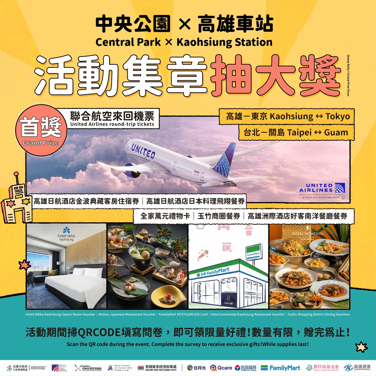 除演出外,今年活動獲得企業熱烈響應與支持。活動期間,凡於中央公園及高雄車站完成指定集章任務者,即有機會抽中聯合航空提供的「高雄-東京」及「台北-關島」來回機票、高雄日航酒店提供的金波典藏客房住宿券、日本料理飛翔餐券,以及高雄洲際酒店 HAWKER好客南洋餐廳餐券等大獎,透過雙主場集章機制,鼓勵民眾深入中央公園、高雄車站體驗雙主場各項活動內容,在參與文化交流的同時,也為自己留下驚喜回憶。