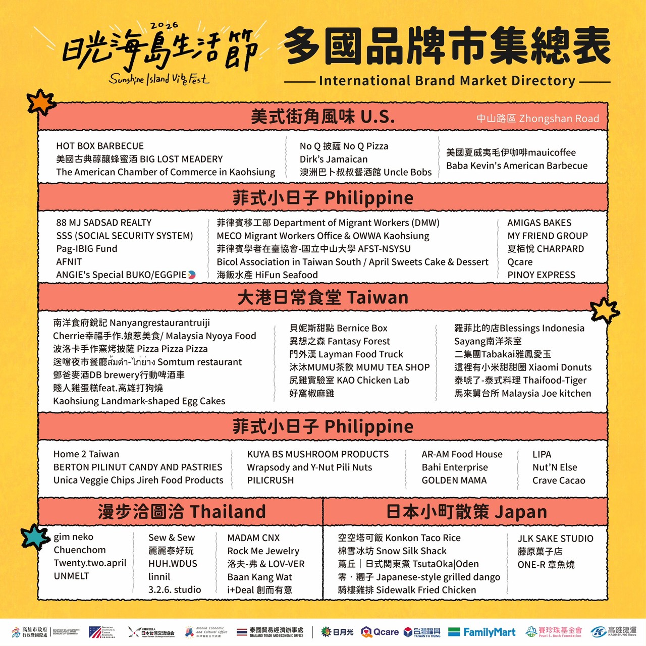 即將在本週五(3月6日)登場的「2026日光海島生活節」話題持續升溫!不只八國演出陣容更勝去年,場域更首度延伸至高雄車站下沉式廣場,與中央公園形成雙主場規模,吸引各界關注。尤其,高雄市政府再度釋出創意宣傳影片,由市長陳其邁攜手美國、日本、菲律賓及泰國駐高代表同框演出,以幽默橋段為活動暖身,引發社群平台熱烈討論,再度為活動增添聲量。行政暨國際處長張硯卿表示,日光海島生活節延續去年吸引14萬人參與的熱烈迴響,今年從音樂卡司、戶外講座到多元文化與運動體驗全面升級,期盼透過輕鬆多元的活動形式,讓市民在交流中認識不同文化,深化對國際的理解,建立更緊密的國際友誼。誠摯邀請高雄市民、全台民眾及國際朋友於3月6日至8日走進中央公園與高雄車站,共同感受跨國海島文化的魅力。
