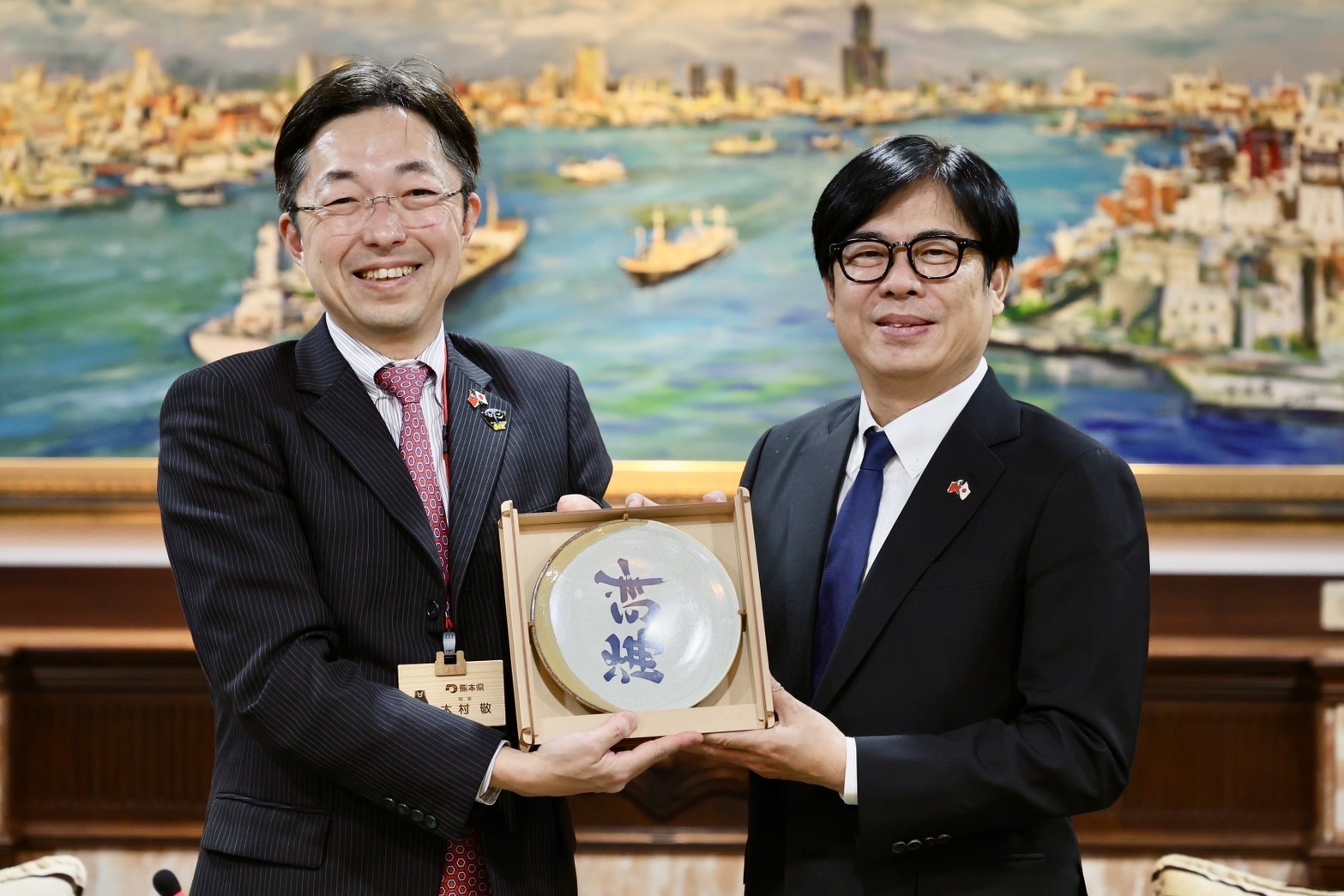 Governor Kimura expressed the immense convenience of taking a direct flight from Kumamoto to Kaohsiung during his first visit to the harbor city. The COVID-19 pandemic had halted direct flights. Now, with the resumption of flights, he had finally fulfilled his wish to visit Kaohsiung. The resumption of direct flights not only promotes exchanges between Kumamoto and Kaohsiung but also accelerates interactions between Kumamoto and Taiwan. Governor Kimura mentioned that with TSMC's presence in Kumamoto, he expressed his hope for future bilateral exchanges regarding professionals in related fields and for learning from Taiwan's successful experience in promoting science parks. Governor Kimura also highlighted Kumamoto Prefecture's participation in the "Sunshine Island Vibe Fest" concluded last weekend, which received a enthusiastic response from the public. He hoped direct flights between the two regions would further promote cultural exchange.